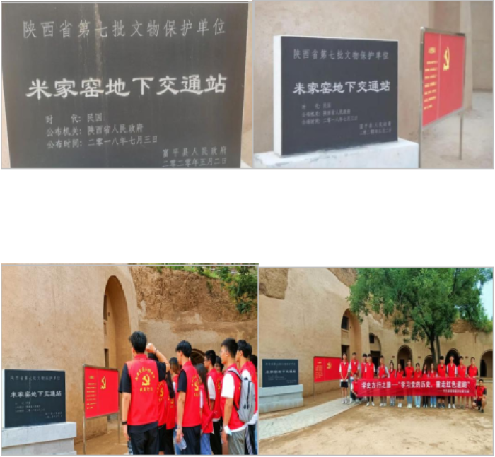 —学习党的历史,重走红色道路7月15日,该院组织教师党员以及学生入党积极分子赴渭南市富平县爱国主义教育基地、米家窑红色地下交通站旧址开展学史力行之旅。在参观习仲勋同志陵园中,师生党员深受习仲勋同志精神所感染。在米家窑地下交通站的展馆和旧址通过观看介绍,了解了无数共产党员和革命群众舍生忘死为抗战胜利做出的巨大的贡献。通过此次学史力行之旅,党员同志们对老一辈的革命家精神有了更加深刻地领悟,在今后的学习生活中将进一步践行此精神。