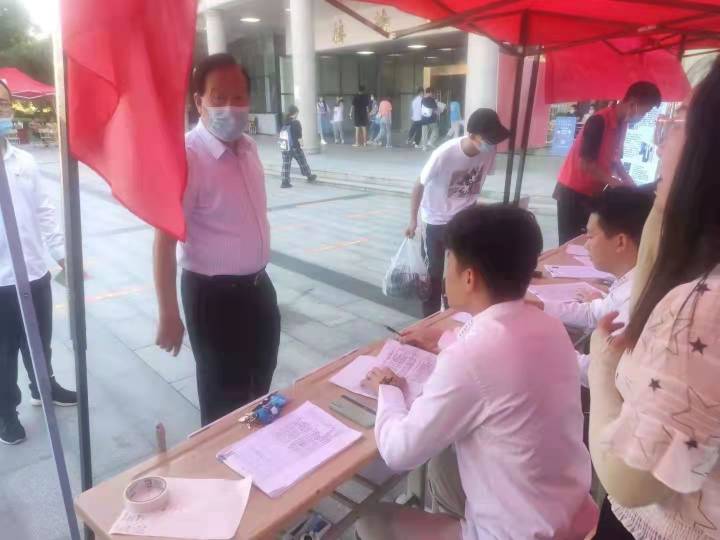 在西广场迎新点,党员志愿者们为陆续到来的2021级新生核验个人信息,引导新生填写个人信息、办理宿舍入住手续、保管新生个人行李等。在迎新老师和学生党员志愿者的相互协作下,新生有条不紊地办理入学手续。