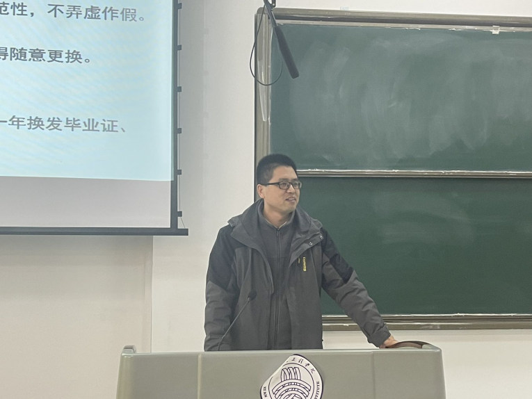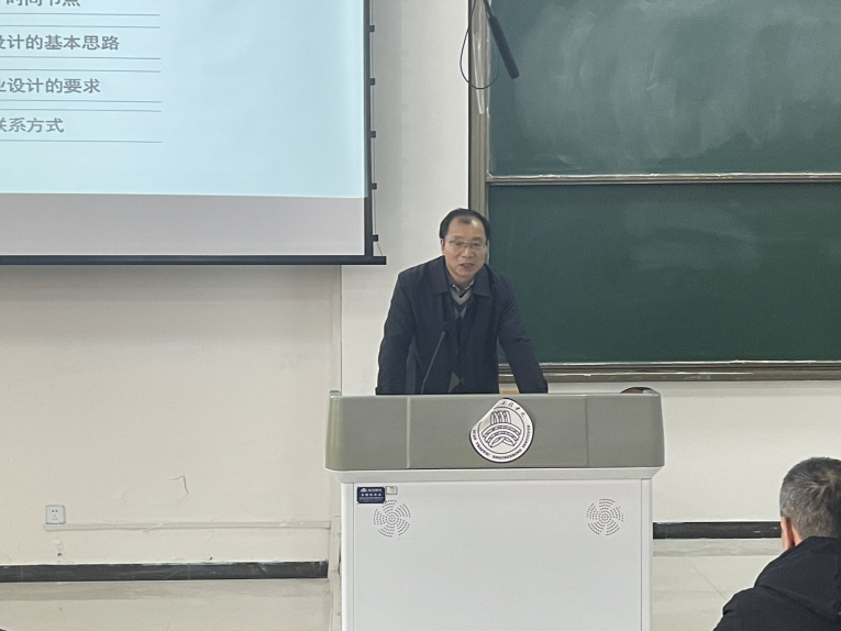 接着,副院长牛作领对学院毕业设计系统流程进行了全面系统的介绍,包括拟题、任务书、开题报告、中期检查、论文初稿等环节的指导细节内容,特别提醒了拟题审批表中有关于项目内容跟往年不同的部分,以及目前的指导工作安排。他强调指导老师必须对学生毕业论文的意识形态做正确引导,及时指出学生毕业论文的选题及理论选择问题避免出现重大错误,对于老旧理论的使用必须要持有思辨的过程。