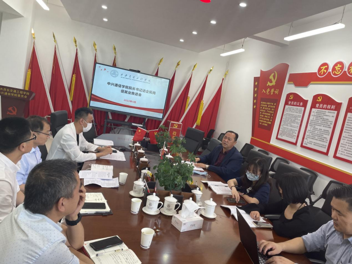 为贯彻落实教育部印发的《关于开展全国高校书记院长访企拓岗促就业专项行动的通知》文件精神,帮助毕业生解决严峻就业形势,结合学院实际。4月25日,中兴通信学院在党员活动室召开院长书记访企拓岗促就业推进会。学校副校长王勇、该院院长李乃乾、副院长牛作领、王冠军、席晓冰以及学管秘书、毕业班辅导员参加会议,会议由该院党委书记张斌主持。