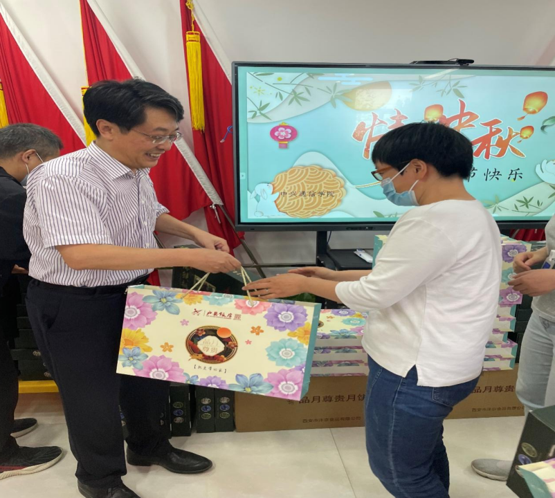 当“皓月”遇见“教师”,是团圆撞上了感恩!为感恩全体教职工的辛勤付出,让全体教职工能够度过一个团圆、愉快的中秋佳节,我校工会开展为全体教职工发放月饼活动,执行校长曹庆年教授代表学校工会为中兴通信全体教职工送上祝福。