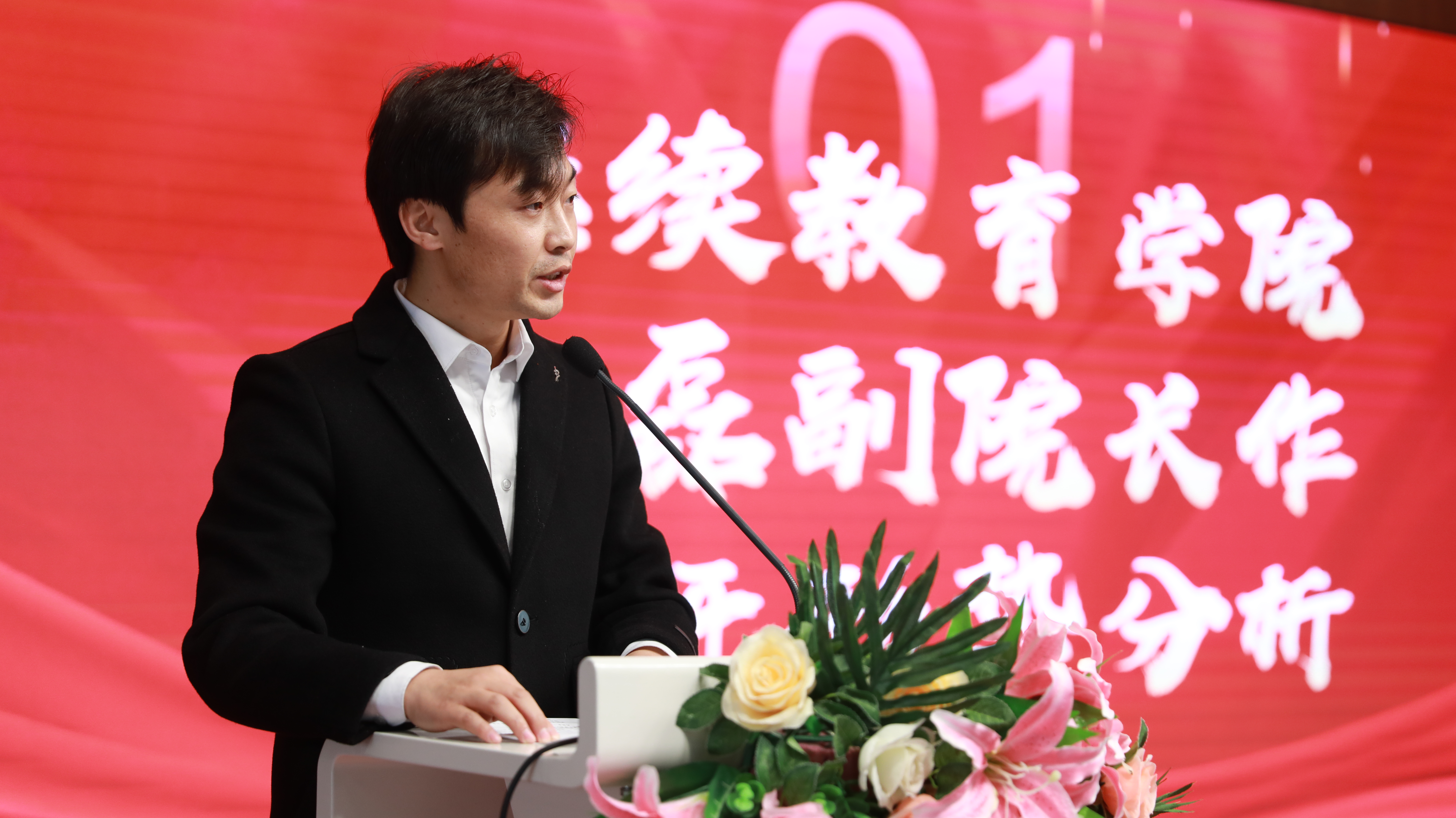 大会伊始,继续教育学院副院长张磊向同学们着重强调了考研的重要性,并对考研形势和前景做出分析。他分析了历年学生的考研情况并就院校的选择等方面提出指导性建议,加深了同学们对相关考研政策的了解,同时对大家寄予了厚望。考研学生代表白丽同学发言,她的发言坚定了同学们的考研决心。席李楠同学带领考研学生庄严宣誓:“尽管考研不是人生的终极目标,但这条考研路既然是自己选择的路,哪怕荆棘满布,我们便没有理由说放弃!坚持下去,努力向前,走出属于自己的路!”