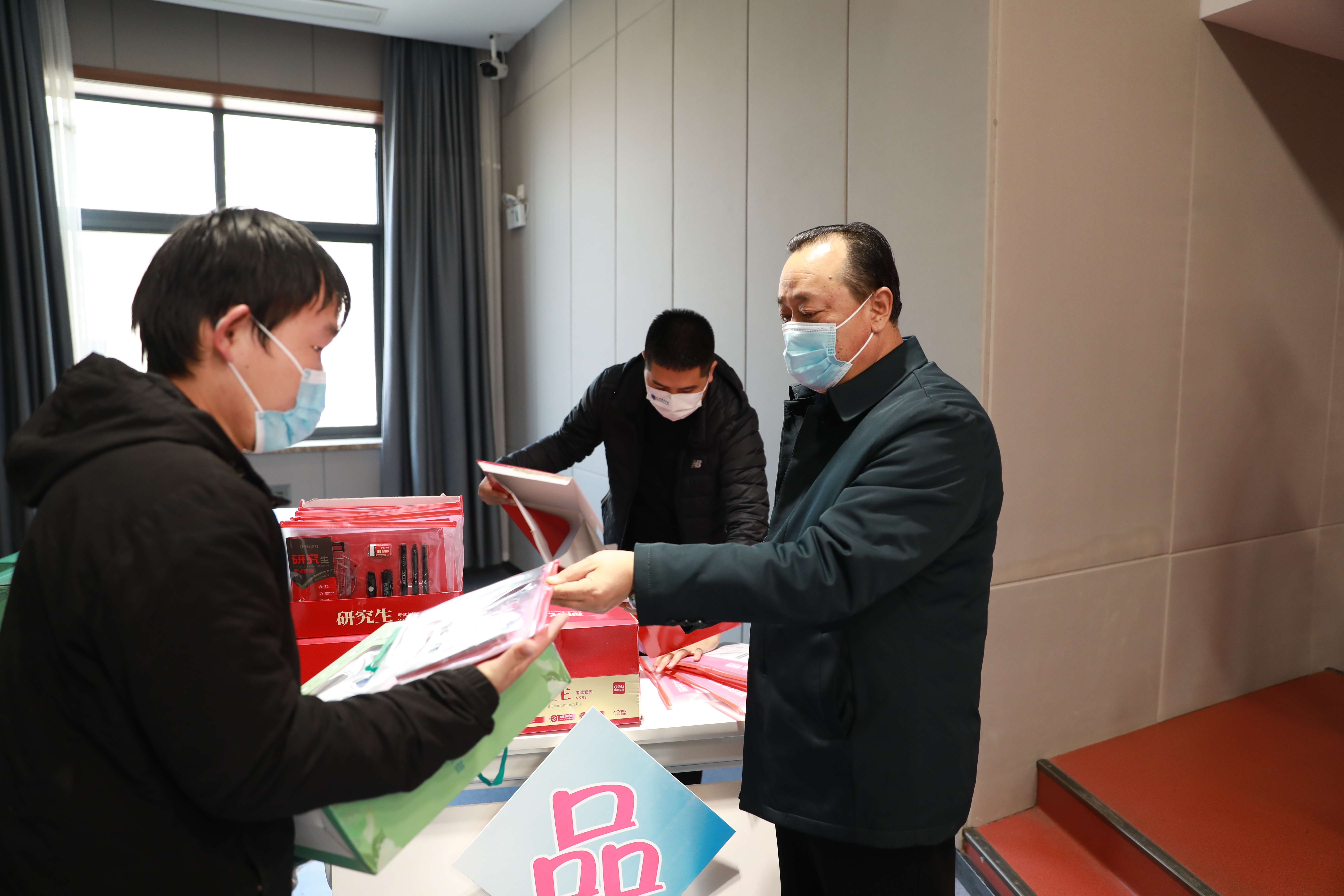 会议结束后,校、院领导给考研同学送上暖心的慰问物资,传达了来自学院和老师沉甸甸的祝福,饱含了学院对学子的真情关怀和殷切期望,希望美好心意如冬日暖阳般温暖护航着考研征途上的奋进青年,愿考研学子们目光坚定、信心满怀、心想事成。