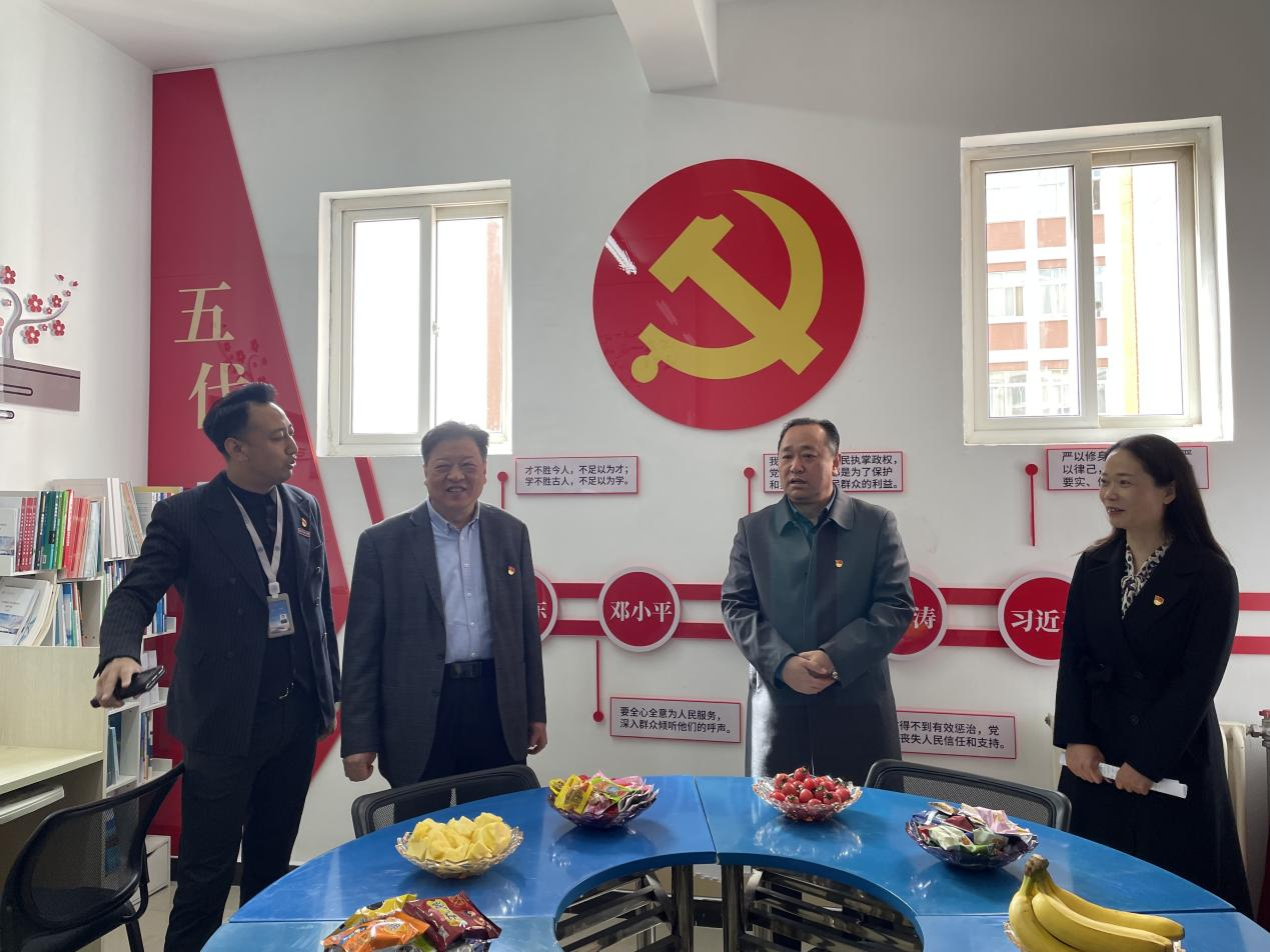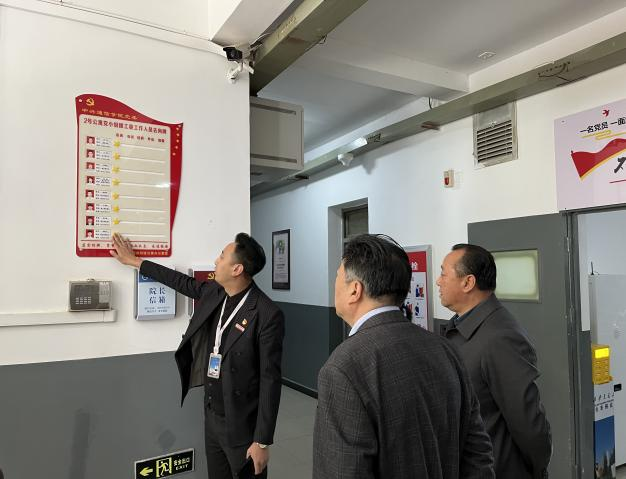 学校各位领导首先检查了宿舍楼内的一站式学生社区服务站建设和党建文化墙布展情况。随后,我院党委书记张斌结合党团建设主题,围绕设计思路、品牌亮点、特色工作、已开展活动情况、重难点问题突破和后期整改措施等方面进行了汇报。提到根据本院学生的切实需要,建成了博雅之堂、心灵驿站、无忧解惑和党政连线四大工作版块,各部门之间团结协作,共同保障学生公寓党团工作站的有序进行。副校长王勇强调是一站式学生社区服务站以学生公寓为学生党建的一个重要阵地,要不断筑牢理想信念,凝聚价值追求,达到教育党员、锻炼党员、增强党性、以点带面的辐射效应,更好实现全员、全过程、全方位的三全育人成效。