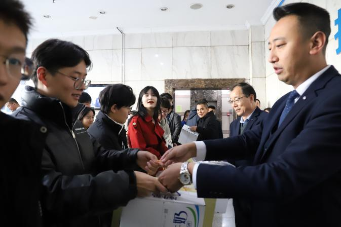 会谈结束后,学院一行还与正在公司参加实习的20位同学进行亲切的交流并发去了慰问品,仔细询问了他们在企业的实习情况。