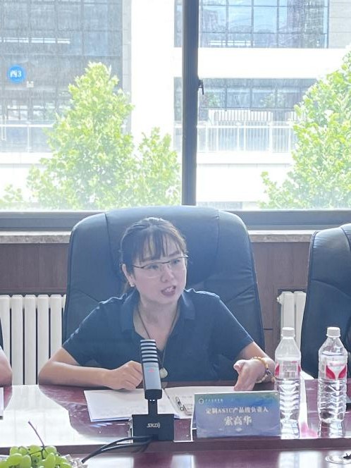 会议议程第二项议程:轨道交通未来产业创新研究院副院长王思明教授介绍轨道交通等应用领域研究现状。翔腾微电子公司定制ASIC产品线负责人索高华也就企业在轨道交通等应用领域的新技术与参会领导进行交流沟通。