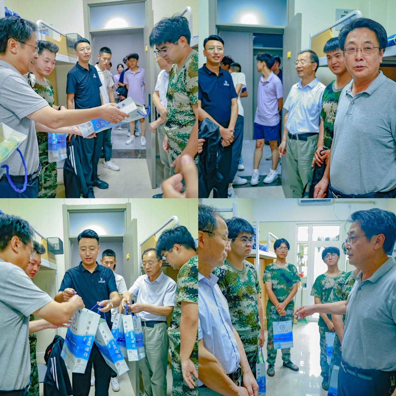 在慰问过程中,曹庆年校长还特别回忆起了自己当年上大学时的军训经历。他深情地说:“军训是我们大学生活的第一堂课,它不仅教会了我们纪律与服从,更让我们学会了坚持与拼搏。那段日子虽然艰苦,但也是我人生中最宝贵的回忆之一。我希望你们也能珍惜这段时光,从中汲取力量,为未来的学习和生活打下坚实的基础。”为了鼓励新生们更好地投入学习,学院领导还特意准备了一批学习用品,包括笔记本、U盘、书包等,作为礼物赠送给每一位新生。这些学习用品不仅实用,更寄托了学院对新生们的殷切期望和美好祝愿。