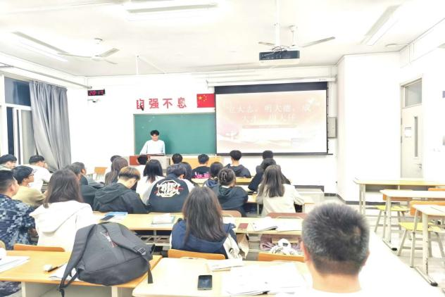 随后,负责人讲解“立大志,明大德,成大才,担大任”的含义,这是习主席在勉励广大青年要肩负历史使命,坚定前进信心时对大学生提出的期盼,负责人详细解释了四个短语所承载的内涵,并在之后播放了相关视频让同学们观看学习。