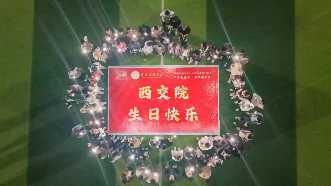校庆前夕,为表达对母校的热爱和祝福,中兴通信学院团总支学生会为全院师生发放校庆30周年纪念徽章。17日晚,全体成员在操场拉起了“西交院生日快乐”的巨幅喷绘。这一创意十足的祝福方式不仅吸引了众多师生的关注,也展现了学院团总支学生会的凝聚力和创新精神。在巨幅喷绘的见证下,全体师生共同为母校送上了最真挚的生日祝福。