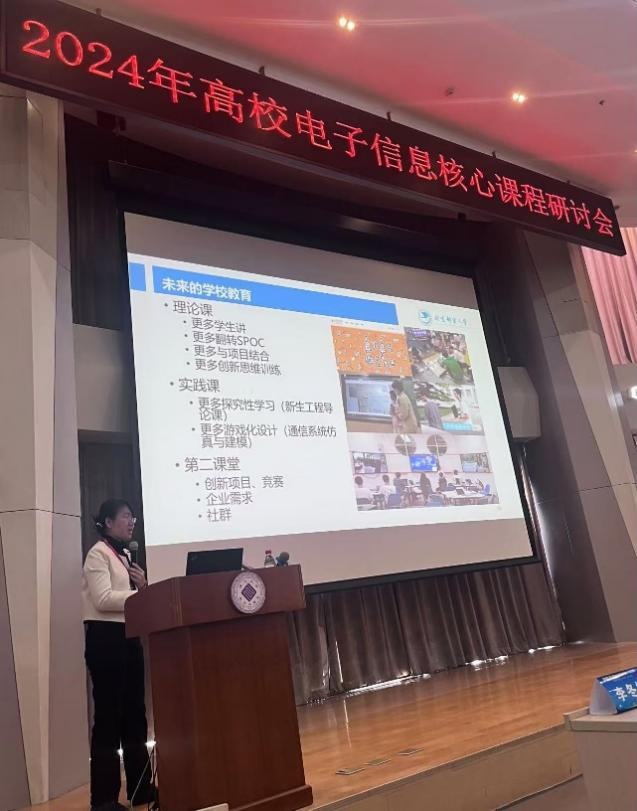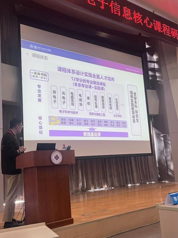 本次研讨会的核心议题围绕电子信息核心课程的优化与创新展开。多位专家学者作了精彩的主题报告,包括清华大学电子工程系副主任李懋坤副教授对本科课程教改情况的整体介绍,北京邮电大学教务处副处长赵慧教授关于人工智能赋能人才培养的思考与实践,以及清华大学电子工程系多位教师在课程构建、实验教学改革等方面的探索与尝试。