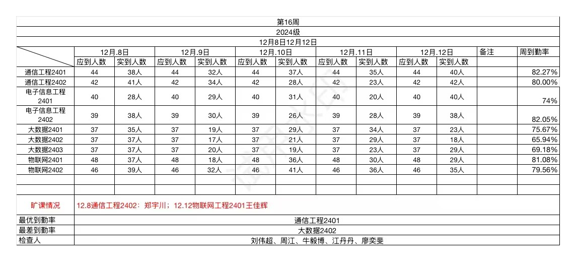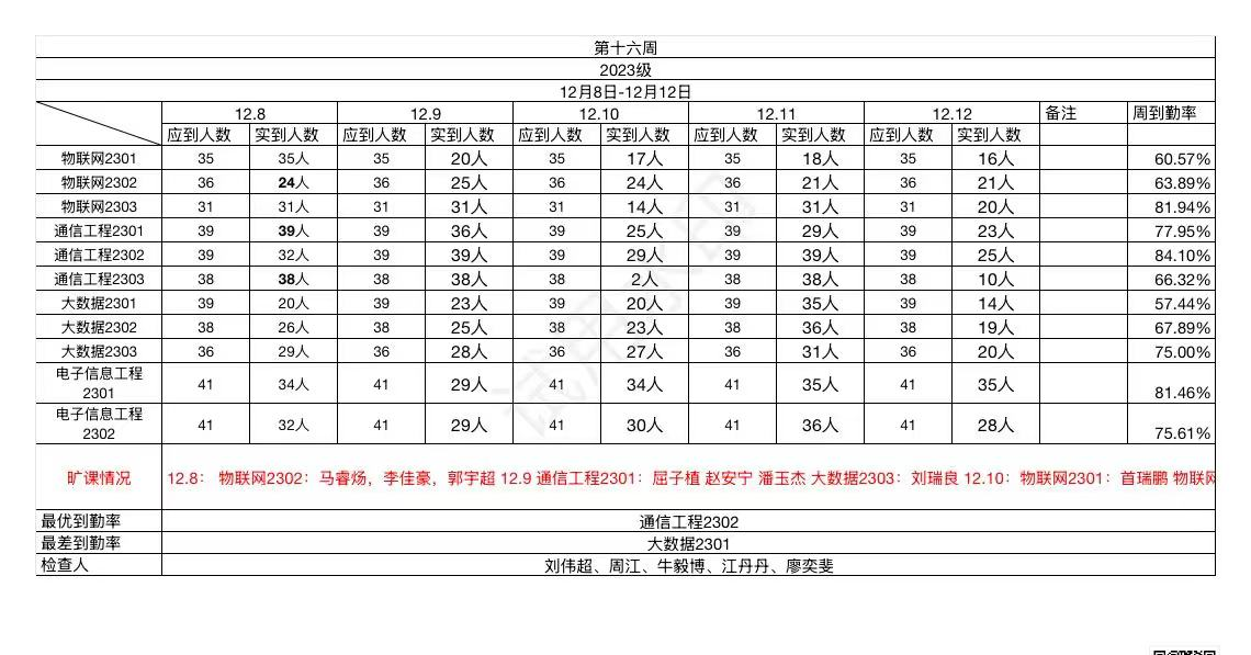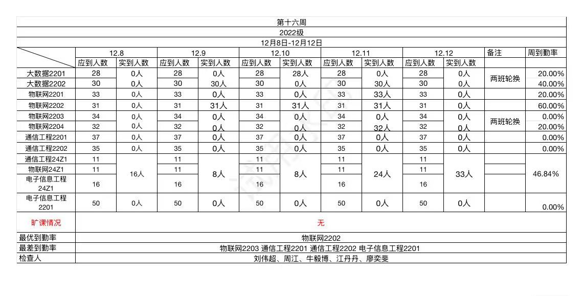 现将中兴通信学院第十六周晚自习检验名单公布如下: