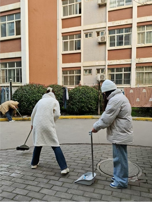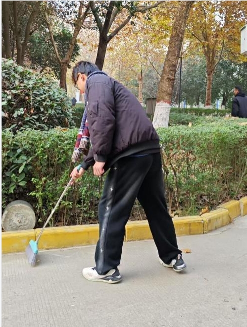 在本次一站式学生社区劳动活动中,同学们响应号召,以饱满的热情投入到打扫工作当中。活动现场,同学们分工明确、配合默契。一部分同学手持扫帚,认真清扫着校园地面,每一个角落都不放过,那些平日里隐匿在墙角的灰尘和垃圾都被一一清理出来,地面恢复了干净整洁。