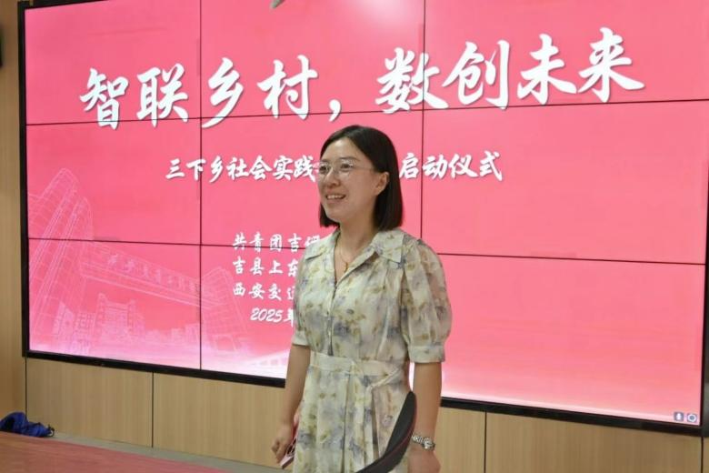 开幕式后,吉县共青团书记李媛专程慰问实践队全体队员。她详细了解了实践队伍的成员组成、专业背景及本次实践的具体内容,对队员们的热情与准备表示高度肯定。李书记表示,共青团将全力支持实践活动的开展,并希望通过青年学生的创新视角,助力上东村特色产业与文旅资源的宣传推广。她寄语实践队员:“希望你们在实践中收获成长,为上东村带来更多青春活力与科技动能。