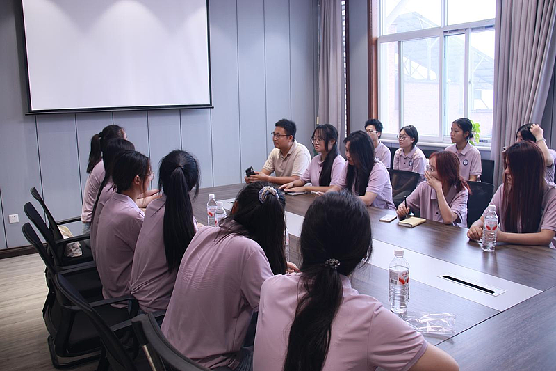 抵达目的地后,实践队在兴平阜盛祥农业科技有限公司会议室召开会议讨论三下乡日程。团队成员们结合本次实践主题,围绕“科技助农、文化赋能”主题细化日程安排。贾老师强调,要结合专业特长,为当地农产品推广提供青年智慧。同学们认真点头回应,为接下来的实践活动做好了充分准备。