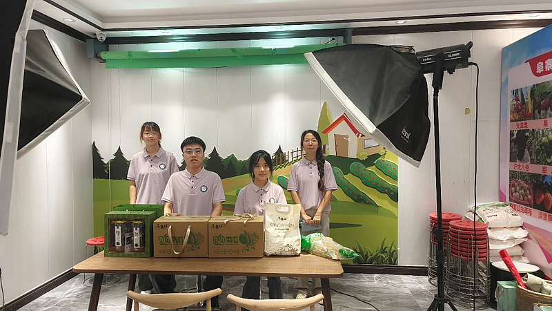 会后,实践队成员走进农产品直播带货间参观学习。队员们现场观摩了主播推介甜瓜、黄瓜,草莓等农产品的实况,并尝试亲身参与直播带货实践,手持各种农产品,向镜头前的网友介绍产地环境、种植优势和口感特点。体验了新媒体助农的乐趣,深刻理解了优质农产品需要借助直播等新渠道,才能更快走进千家万户。