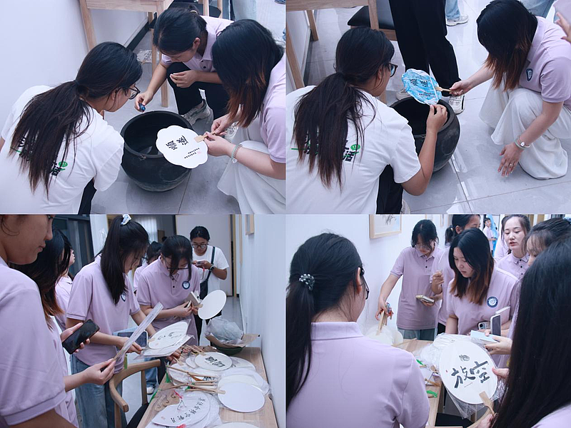团队成员们围坐一堂,亲手实践漆扇制作这项古老的技艺。他们构思出扇面图案布局,将彩漆滴入水中,以扇面轻拂逐渐形成各种纹饰。当漆扇绘制完成时,队员们不仅收获了独一无二的艺术作品,还深刻体会到传统工艺所承载的文化密码与匠心精神。实践队通过亲手体验非遗漆扇制作,体悟到守护乡村文化根脉的深远意义。以漆扇为载体的传统文化技艺,在兴平市阜盛祥变成一幅充满希望的乡村新画卷。