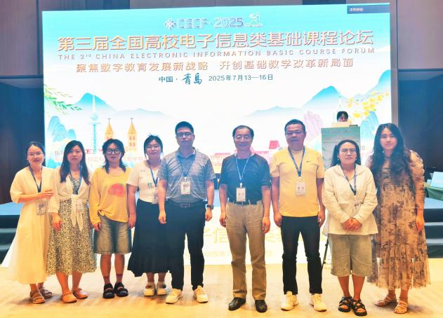 2025年7月13日至16日,由教育部高等学校电子信息类专业教学指导委员会指导的“第三届全国高校电子信息类基础课程论坛”在青岛隆重举行。我校电子信息工程教研室9位教师代表参会,与来自清华大学、北京邮电大学、浙江大学等百余所高校的500余名专家学者共话课程改革与教学创新。