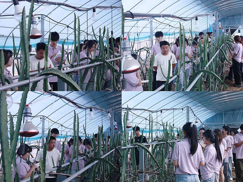 清晨,师生一行抵达燕窝果种植基地。燕窝果,因其果肉呈蜂窝状结构而得名,富含维生素C、膳食纤维等多种营养成分,具有较高的营养价值和市场前景。在工作人员的指导下,队员们参观燕窝果的种植基地,并且学习燕窝果的营养价值、植技巧以及其在推动特色农业发展中的重要地位。除此之外,工作人员还详细地讲解了燕窝果与火龙果的区别,燕窝果和火龙果虽然都属于仙人掌科,但在外观,口感,甜度,营养,产量等方面有明显区别。通过学习,队员们不仅了解了燕窝果的生长历史和发展脉络,还对乡村农业的科技化、特色化发展有了更深刻的认识。燕窝果基地作为当地特色农业的代表,展现了乡村产业发展的新活力,也让队员们感受到乡村文化的独特魅力。