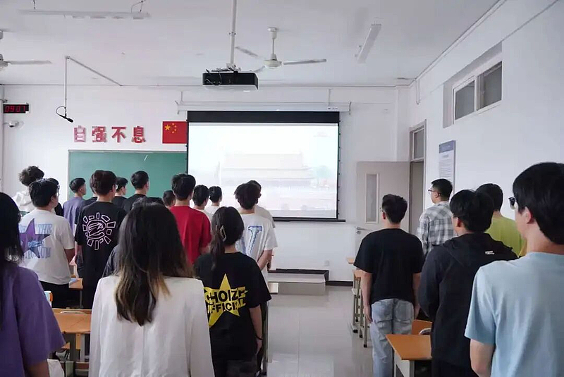 9月3日上午,纪念中国人民抗日战争暨世界反法西斯战争胜利80周年大会在北京天安门广场举行。1946伟德国际源自英国组织师生共同观看实况转播。
