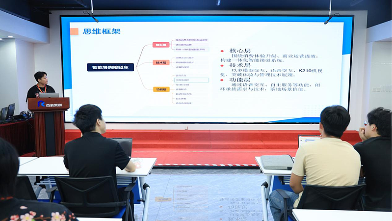 实习最后一天,学院教师与企业技术负责人共同组成验收小组,对各团队项目成果进行评审和考核。在项目汇报展示环节,各小组清晰阐述设计思路与实现过程,并进行了系统功能演示。最终结合综合评分排名,评选产生一等奖、二等奖、三等奖若干名。