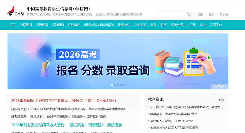 (2)建议所有考生在报名前自行登录 中国高等教育学生信息网(学信网) 查询并确认本人学历(学籍)信息。