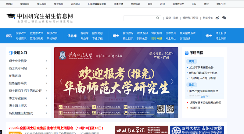 研究生招考唯一官网:中国研究生招生信息网(研招网)