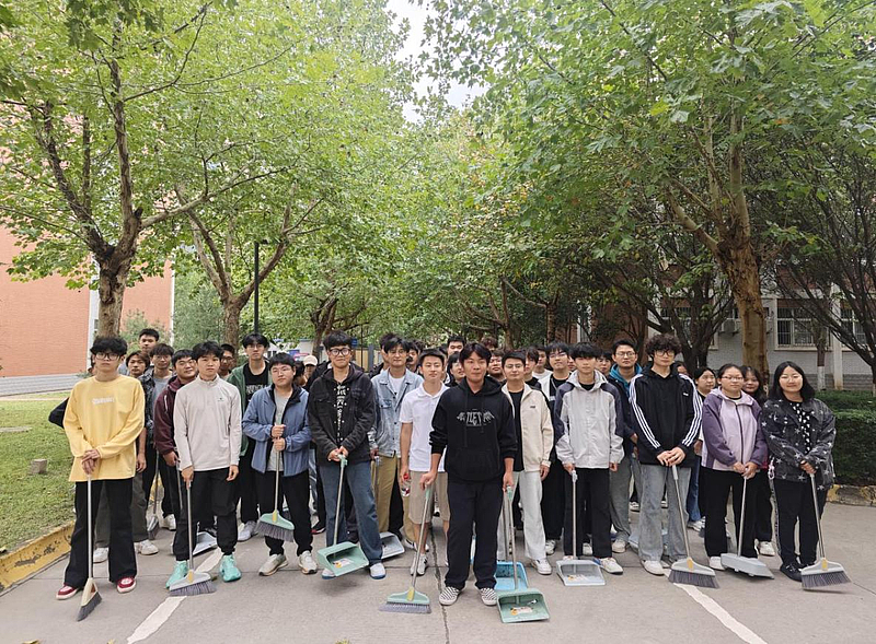 劳动间隙,雒鹏翔老师与学生深入交流环保价值,倡导将 “随手捡、主动护” 的卫生习惯融入日常,鼓励大家从集中清扫的参与者转变为公共环境的常态化守护者与文明风尚的积极传播者。历经数小时奋战,原本杂物散落的公共区域实现全面焕新,师生志愿者虽汗流浃背,却满溢劳动成就感。