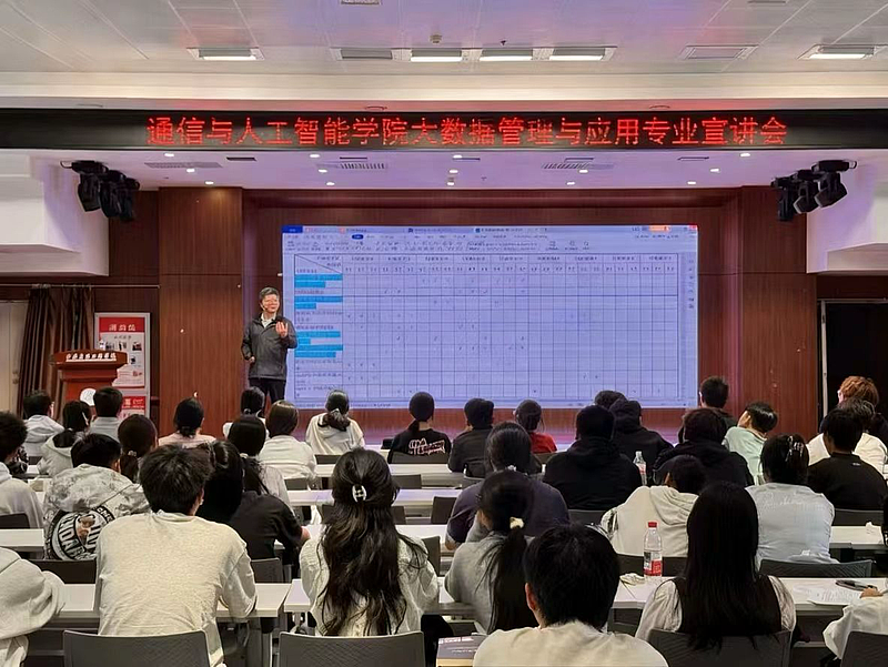 宣讲会上,徐炜老师聚焦新生最关心的就业前景展开详细解读。他提到,学院开设此次专业宣讲会,核心是为深化大数据管理与应用专业内涵建设,精准对接行业人才需求,既为新生明确学习方向、规划大学生涯提供多元参考,也以 “专业引领、定向培育” 为定位,回应行业对高素质大数据人才的迫切需求,着力为新生搭建 “入学即明晰专业目标、毕业即具备岗位能力” 的成长通道。