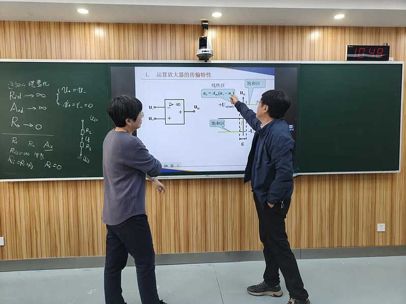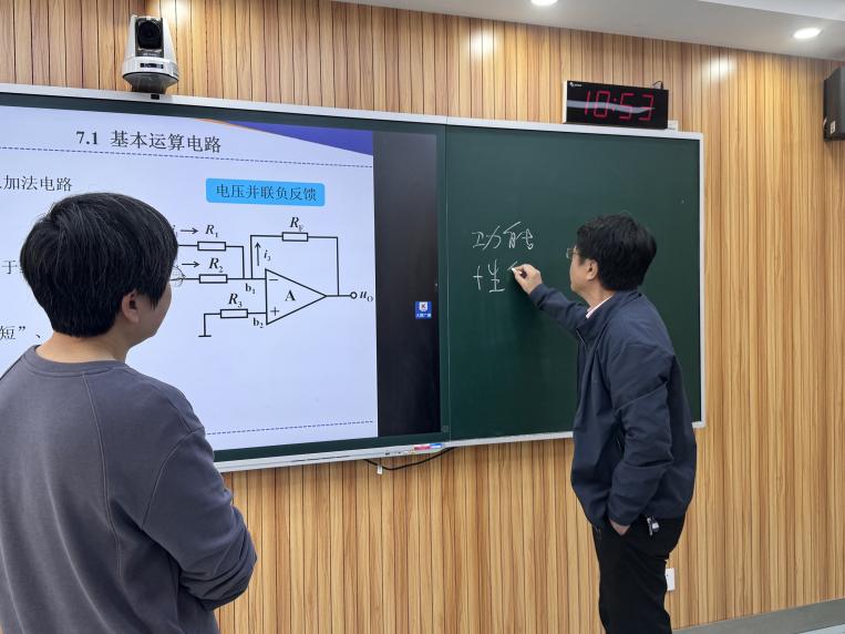活动中,汤晓方老师就《集成运放的线性运算电路》课程内容进行了教学展示。其讲授过程逻辑严密,从基础原理到电路设计,内容详实,条理清晰。随后,王玉老师对《戴维南定理》进行了深入浅出的讲解,巧妙运用生活化比喻阐释抽象概念,有效增强了课堂的生动性与感染力。