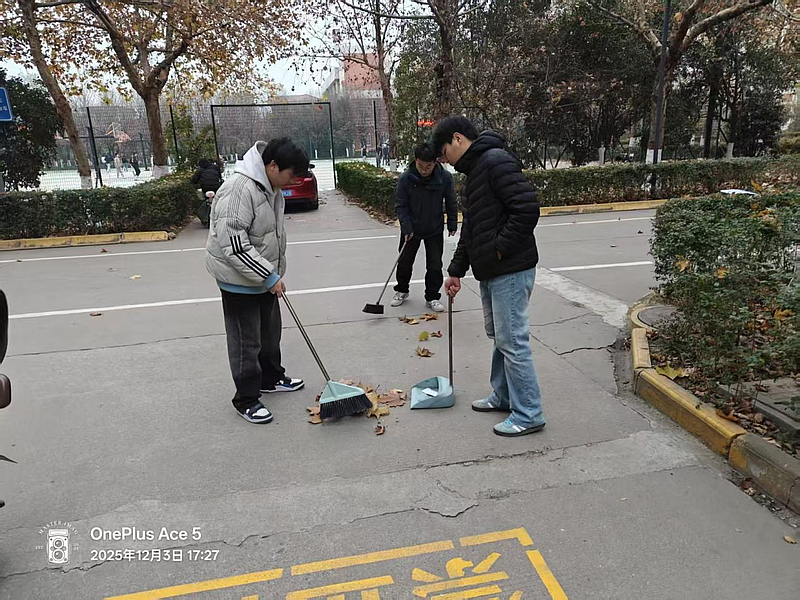活动伊始,负责人组织学生拿着劳动工具,明确“分片负责、协同配合”的工作原则,确保清扫任务高效推进。同学们迅速投入行动,手持扫帚、簸箕等工具,对广场内的落叶、纸屑、塑料杂物等进行全面清理,有的弯腰捡拾隐藏在草丛中的垃圾,有的细致清扫地面缝隙里的碎屑,有的主动将装满的垃圾袋分类投放至指定回收点。面对角落处难以清理的杂物,大家相互配合、接力清理,现场一派热火朝天的劳动景象,青春的身影成为广场上一道靓丽的风景线。