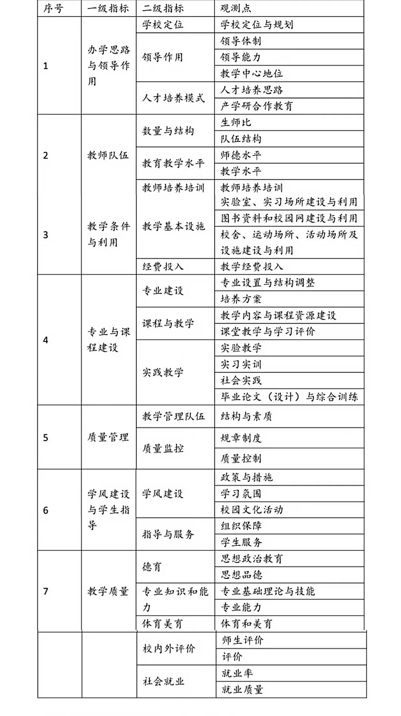 二是注重对教学过程的规范管理。指标体系对教师教学、专业与课程建设、教学管理等教学过程的主要环节提出了明确要求,其目的是促进教育教学质量提高,使学生直接受益。